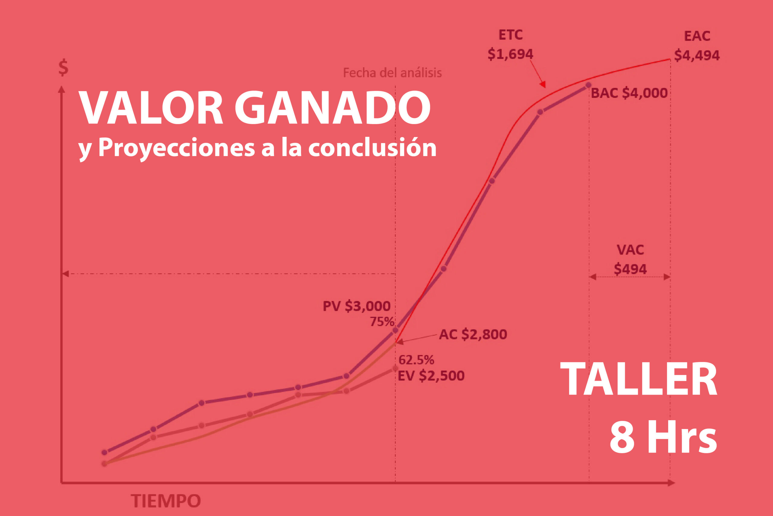 - Utilizar e interpretar la información del Valor Ganado como EV, PV, AC, BAC, CV, SV, SPI